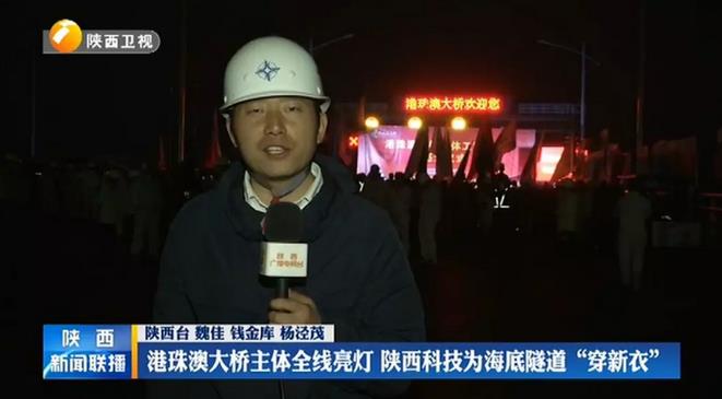 記者:“這里是位于香港和珠海交界處的港珠澳大橋東人工島,今天晚上,在這里舉行港珠澳大橋主體工程全線亮燈儀式,來自陜西的建設(shè)者也將在這里度過一個難忘的跨年夜。”